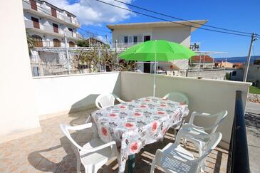 Appartamento può accogliere 6 ospiti. I letti sono disposti nelle camere da letto che sono 3, su 79m2. Gli ospiti hanno a disposizione il proprio terrazzo per godere nelle calde serate estive. Dall'appartamento si gode di una vista sul mare. Si può preparare il cibo utilizzando il barbecue comune.