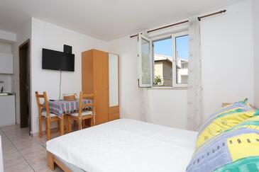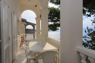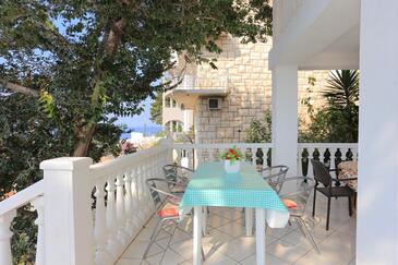 Appartamento può accogliere 8 ospiti. I letti sono disposti nelle camere da letto che sono 2, e nella camera di soggiorno, su 80m2. Gli ospiti hanno a disposizione il proprio terrazzo per godere nelle calde serate estive. Dall'appartamento si gode di una vista sul mare. Si può preparare il cibo utilizzando il barbecue comune.