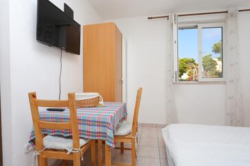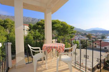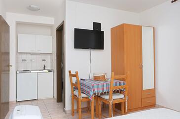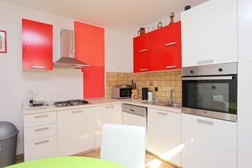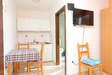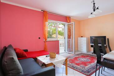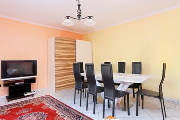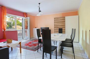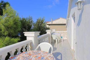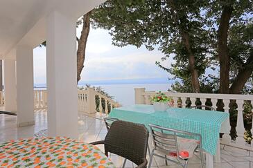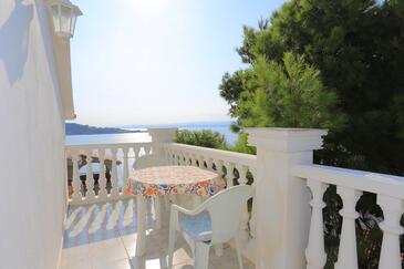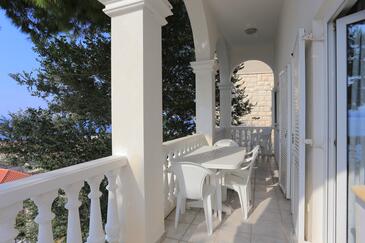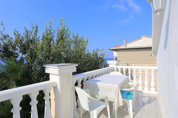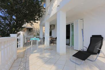 Appartamento può accogliere 8 ospiti. I letti sono disposti nelle camere da letto che sono 2, e nella camera di soggiorno, su 80m2. Gli ospiti hanno a disposizione il proprio terrazzo per godere nelle calde serate estive. Dall'appartamento si gode di una vista sul mare. Si può preparare il cibo utilizzando il barbecue comune.