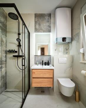 Casa può accogliere 12 ospiti. I letti sono disposti nelle camere da letto che sono 6, su 158m2. Gli ospiti hanno a disposizione il proprio terrazzo per godere nelle calde serate estive. Dalla casa si gode di una vista sul mare. Per il piacere totale e il relax c'è il barbecue privato solo per gli ospiti di quest'alloggio. Durante il soggiorno gli ospiti si possono rilassare nella piscina privata. Nell'unità di alloggio si possono portare gli animali domestici senza alcun pagamento supplementare. Arrivati nell'unità d'alloggio i clienti devono pagare un deposito (il prezzo è indicato sul sito).