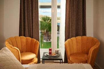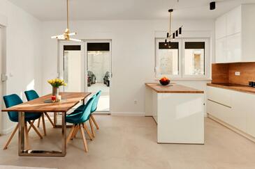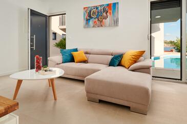 Casa può accogliere 12 ospiti. I letti sono disposti nelle camere da letto che sono 6, su 158m2. Gli ospiti hanno a disposizione il proprio terrazzo per godere nelle calde serate estive. Dalla casa si gode di una vista sul mare. Per il piacere totale e il relax c'è il barbecue privato solo per gli ospiti di quest'alloggio. Durante il soggiorno gli ospiti si possono rilassare nella piscina privata. Nell'unità di alloggio si possono portare gli animali domestici senza alcun pagamento supplementare. Arrivati nell'unità d'alloggio i clienti devono pagare un deposito (il prezzo è indicato sul sito).