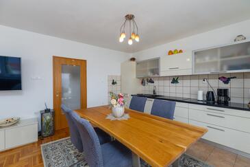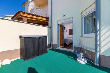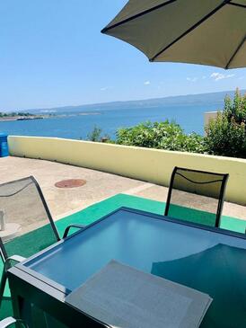Appartamento può accogliere 6 ospiti. I letti sono disposti nelle camere da letto che sono 2, e nella camera di soggiorno, su 60m2. Gli ospiti hanno a disposizione il proprio terrazzo per godere nelle calde serate estive. Dall'appartamento si gode di una vista sul mare.