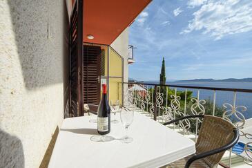 Appartamento può accogliere 6 ospiti. I letti sono disposti nelle camere da letto che sono 2, e nella camera di soggiorno, su 67m2. Gli ospiti hanno a disposizione il proprio balcone per godere delle calde serate estive. Dall'appartamento si gode di una vista sul mare. Si può preparare il cibo utilizzando il barbecue comune. Durante il soggiorno gli ospiti possono utilizzare la piscina comune. Nell'unità di alloggio si possono portare gli animali domestici con un pagamento supplementare.