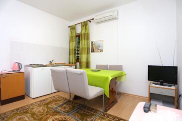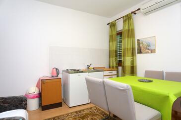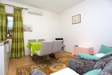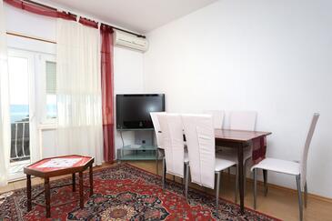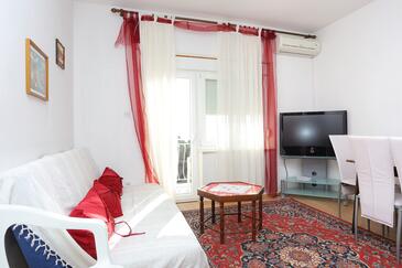 Appartamento può accogliere 6 ospiti. I letti sono disposti nelle camere da letto che sono 2, e nella camera di soggiorno, su 52m2. Gli ospiti hanno a disposizione il proprio balcone per godere delle calde serate estive. Dall'appartamento si gode di una vista sul mare. Si può preparare il cibo utilizzando il barbecue comune. L'unità di alloggio prenotata utilizza il terazzo in comune. Le stanze dell'unità d'alloggio non sono connesse in un insieme. L'unità d'alloggio ha delle stanze separate dal resto dell'unità. L'unità d'alloggio non è separata con porta dal resto della casa.