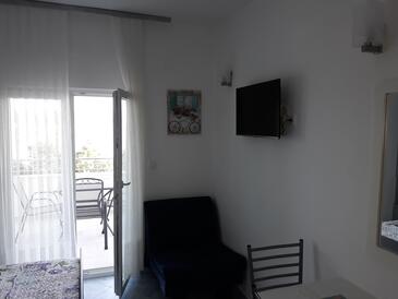 Appartamento può accogliere 4 ospiti. I letti sono disposti nelle camere da letto che sono 1, e nella sala da pranzo, su 28m2. Gli ospiti hanno a disposizione il proprio terrazzo per godere nelle calde serate estive. Dall'appartamento si gode di una vista sul mare. Si può preparare il cibo utilizzando il barbecue comune.