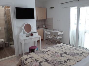 Appartamento può accogliere 4 ospiti. I letti sono disposti nelle camere da letto che sono 1, e nella sala da pranzo, su 28m2. Gli ospiti hanno a disposizione il proprio terrazzo per godere nelle calde serate estive. Dall'appartamento si gode di una vista sul mare. Si può preparare il cibo utilizzando il barbecue comune.