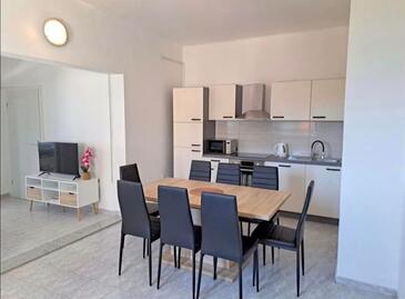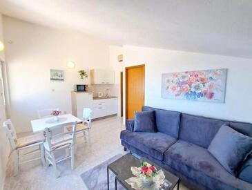 Appartamento può accogliere 8 ospiti. I letti sono disposti nelle camere da letto che sono 2, e nella camera di soggiorno e nella sala da pranzo, su 49m2. Gli ospiti hanno a disposizione il proprio terrazzo per godere nelle calde serate estive. Dall'appartamento si gode di una vista sul mare. Si può preparare il cibo utilizzando il barbecue comune.