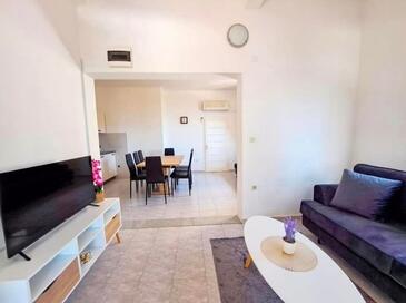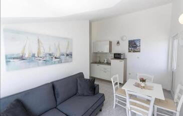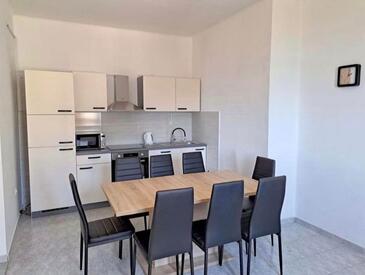 Appartamento può accogliere 8 ospiti. I letti sono disposti nelle camere da letto che sono 2, e nella camera di soggiorno e nella sala da pranzo, su 49m2. Gli ospiti hanno a disposizione il proprio terrazzo per godere nelle calde serate estive. Dall'appartamento si gode di una vista sul mare. Si può preparare il cibo utilizzando il barbecue comune.