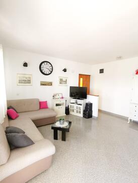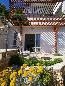 Appartamento può accogliere 8 ospiti. I letti sono disposti nelle camere da letto che sono 3, e nella camera di soggiorno, su 79m2. Gli ospiti hanno a disposizione il proprio terrazzo per godere nelle calde serate estive. Dall'appartamento si gode di una vista sul mare. Per il piacere totale e il relax c'è il barbecue privato solo per gli ospiti di quest'alloggio. Nell'unità di alloggio si possono portare gli animali domestici con un pagamento supplementare. Altri clienti o proprietari passano per terrazzo dell'unità d'alloggio prenotata.