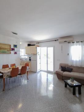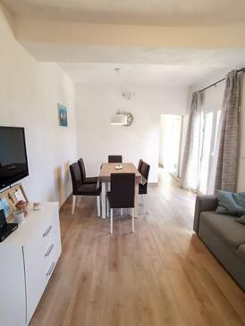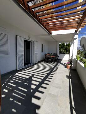 Appartamento può accogliere 8 ospiti. I letti sono disposti nelle camere da letto che sono 3, e nella camera di soggiorno, su 79m2. Gli ospiti hanno a disposizione il proprio terrazzo per godere nelle calde serate estive. Dall'appartamento si gode di una vista sul mare. Per il piacere totale e il relax c'è il barbecue privato solo per gli ospiti di quest'alloggio. Nell'unità di alloggio si possono portare gli animali domestici con un pagamento supplementare. Altri clienti o proprietari passano per terrazzo dell'unità d'alloggio prenotata.