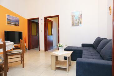 Appartamento può accogliere 5 ospiti. I letti sono disposti nelle camere da letto che sono 2, e nella camera di soggiorno, su 62m2. Gli ospiti hanno a disposizione il proprio terrazzo per godere nelle calde serate estive. Dall'appartamento si gode di una vista sul mare. Per il piacere totale e il relax c'è il barbecue privato solo per gli ospiti di quest'alloggio.