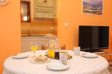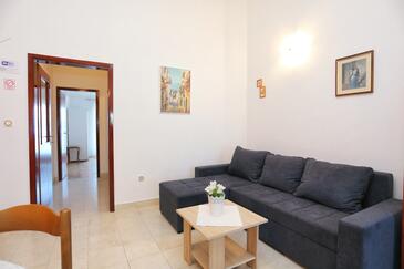 Appartamento può accogliere 5 ospiti. I letti sono disposti nelle camere da letto che sono 2, e nella camera di soggiorno, su 62m2. Gli ospiti hanno a disposizione il proprio terrazzo per godere nelle calde serate estive. Dall'appartamento si gode di una vista sul mare. Per il piacere totale e il relax c'è il barbecue privato solo per gli ospiti di quest'alloggio.