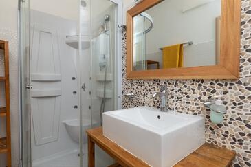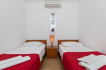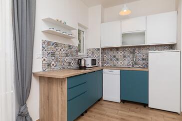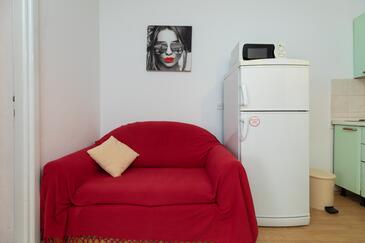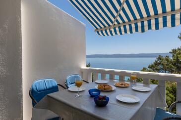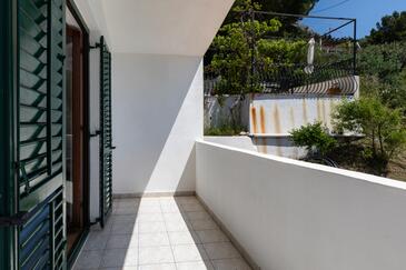 Appartamento può accogliere 5 ospiti. I letti sono disposti nelle camere da letto che sono 2, su 41m2. Gli ospiti hanno a disposizione il proprio terrazzo per godere nelle calde serate estive. Dall'appartamento si gode di una vista sul mare. Si può preparare il cibo utilizzando il barbecue comune.