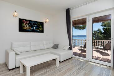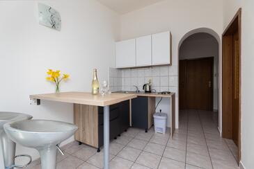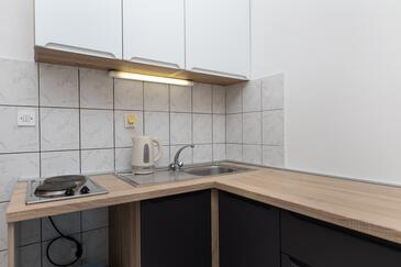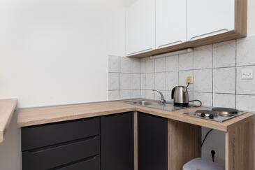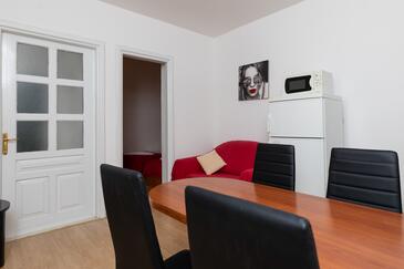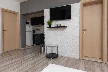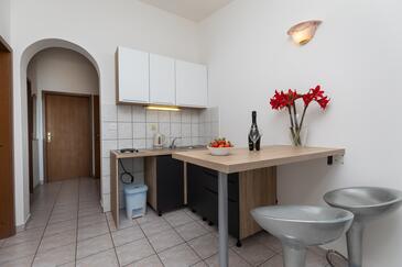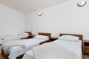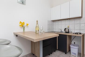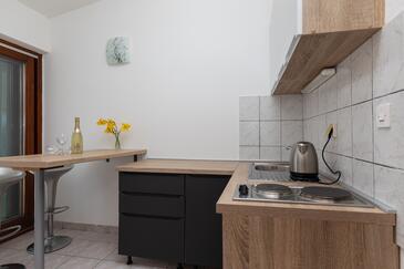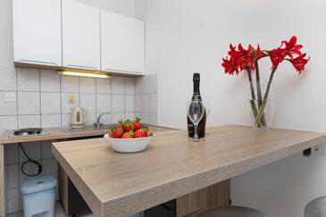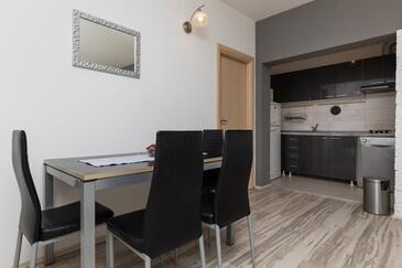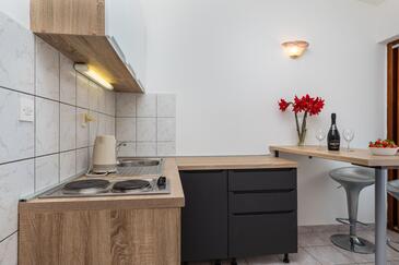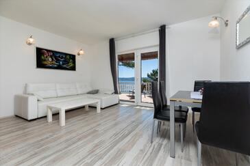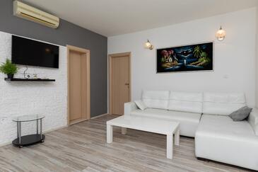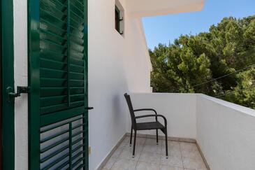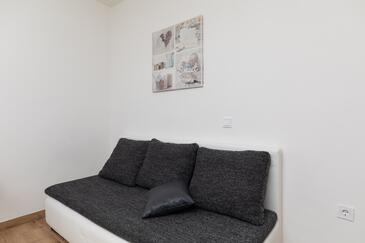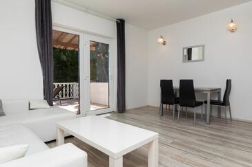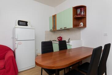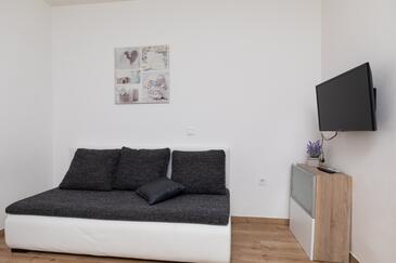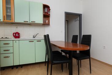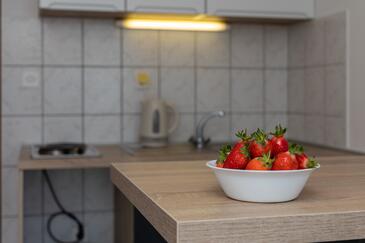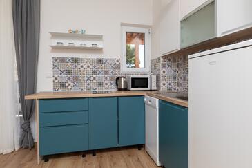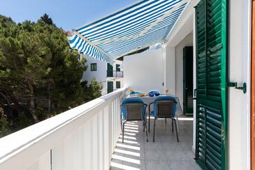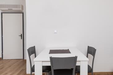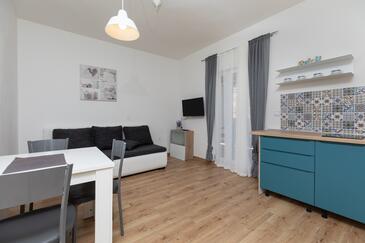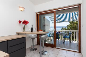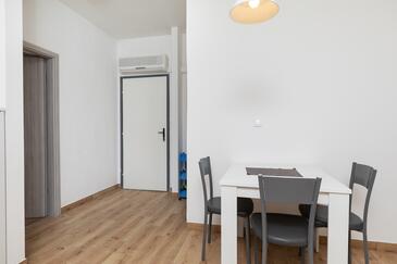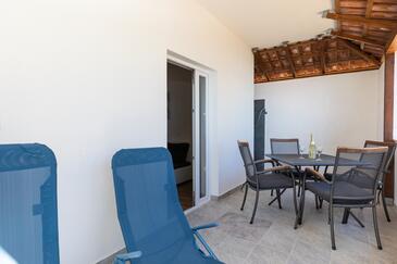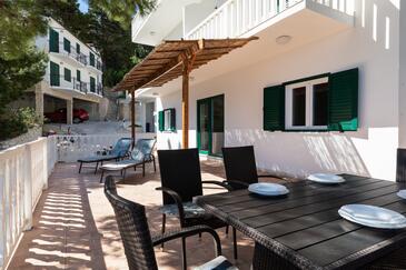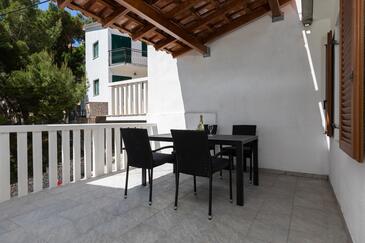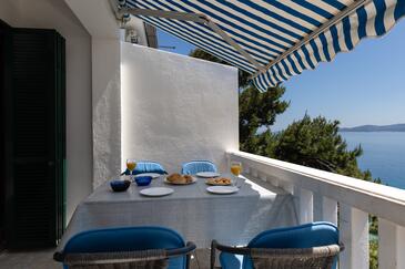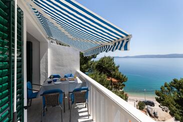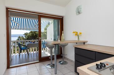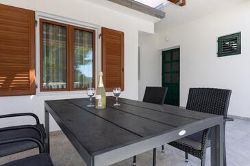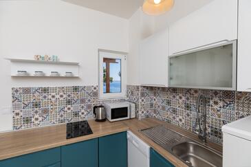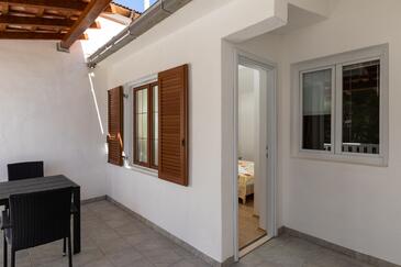 Appartamento può accogliere 5 ospiti. I letti sono disposti nelle camere da letto che sono 2, su 41m2. Gli ospiti hanno a disposizione il proprio terrazzo per godere nelle calde serate estive. Dall'appartamento si gode di una vista sul mare. Si può preparare il cibo utilizzando il barbecue comune.