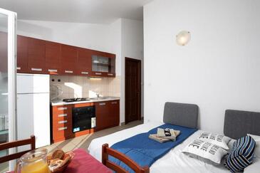 Appartamento può accogliere 5 ospiti. I letti sono disposti nelle camere da letto che sono 1, e nella camera di soggiorno, su 31m2. Gli ospiti hanno a disposizione il proprio balcone per godere delle calde serate estive. Dall'appartamento si gode di una vista sul mare. Si può preparare il cibo utilizzando il barbecue comune.
