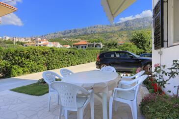 Appartamento può accogliere 6 ospiti. I letti sono disposti nelle camere da letto che sono 3, su 78m2. Gli ospiti hanno a disposizione il proprio terrazzo per godere nelle calde serate estive. Dall'appartamento si gode di una vista sul mare. Si può preparare il cibo utilizzando il barbecue comune.