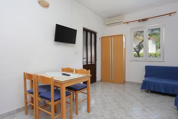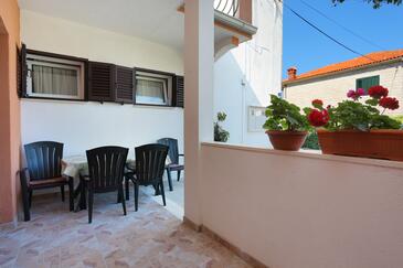 Appartamento può accogliere 6 ospiti. I letti sono disposti nelle camere da letto che sono 3, su 78m2. Gli ospiti hanno a disposizione il proprio terrazzo per godere nelle calde serate estive. Dall'appartamento si gode di una vista sul mare. Si può preparare il cibo utilizzando il barbecue comune.