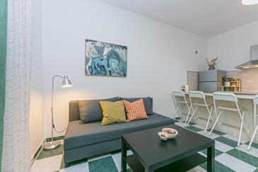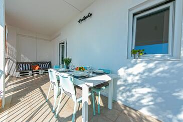 Appartamento può accogliere 6 ospiti. I letti sono disposti nelle camere da letto che sono 2, e nella camera di soggiorno, su 49m2. Gli ospiti hanno a disposizione il proprio terrazzo per godere nelle calde serate estive. Dall'appartamento si gode di una vista sul mare. Si può preparare il cibo utilizzando il barbecue comune. Nell'unità di alloggio si possono portare gli animali domestici con un pagamento supplementare.