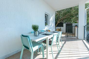 Appartamento può accogliere 6 ospiti. I letti sono disposti nelle camere da letto che sono 2, e nella camera di soggiorno, su 49m2. Gli ospiti hanno a disposizione il proprio terrazzo per godere nelle calde serate estive. Dall'appartamento si gode di una vista sul mare. Si può preparare il cibo utilizzando il barbecue comune. Nell'unità di alloggio si possono portare gli animali domestici con un pagamento supplementare.