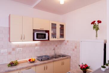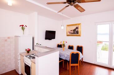 Appartamento può accogliere 8 ospiti. I letti sono disposti nelle camere da letto che sono 3, e nella sala da pranzo, su 75m2. Gli ospiti hanno a disposizione il proprio terrazzo per godere nelle calde serate estive. Dall'appartamento si gode di una vista sul mare. Per il piacere totale e il relax c'è il barbecue privato solo per gli ospiti di quest'alloggio.