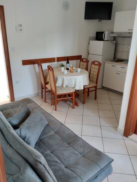 Appartamento può accogliere 4 ospiti. I letti sono disposti nelle camere da letto che sono 2, su 35m2. Gli ospiti hanno a disposizione il proprio terrazzo per godere nelle calde serate estive. Dall'appartamento si gode di una vista sul mare. Si può preparare il cibo utilizzando il barbecue comune.