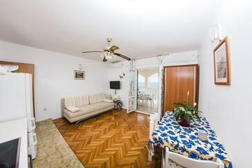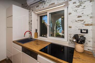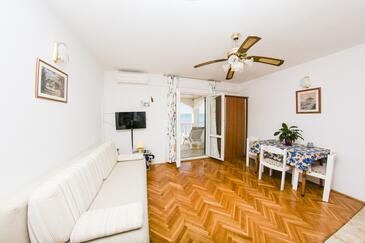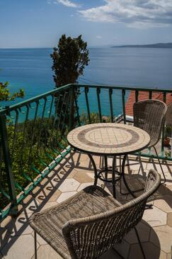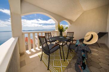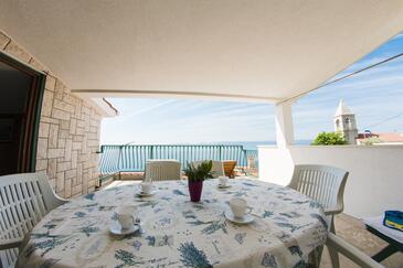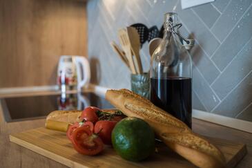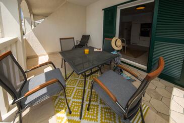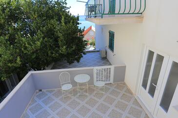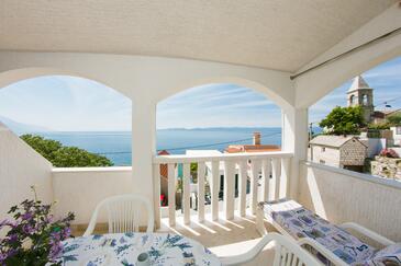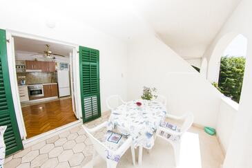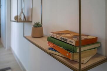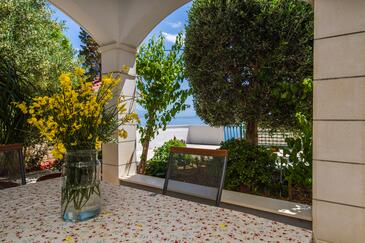 Appartamento può accogliere 9 ospiti. I letti sono disposti nelle camere da letto che sono 4, su 93m2. Gli ospiti hanno a disposizione il proprio terrazzo per godere nelle calde serate estive. Dall'appartamento si gode di una vista sul mare. Si può preparare il cibo utilizzando il barbecue comune.