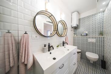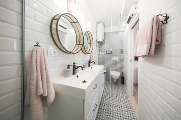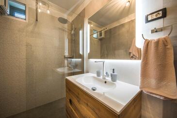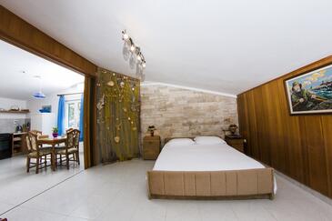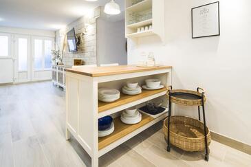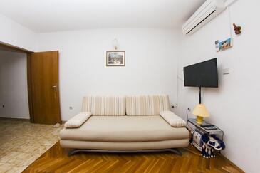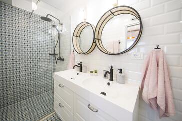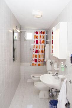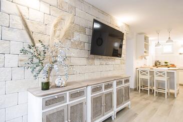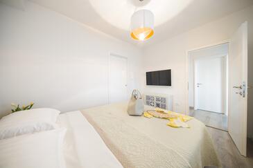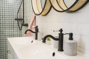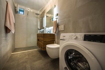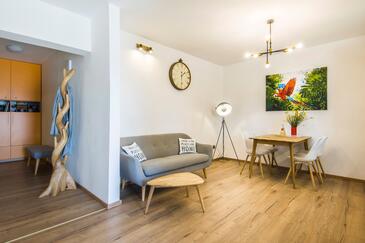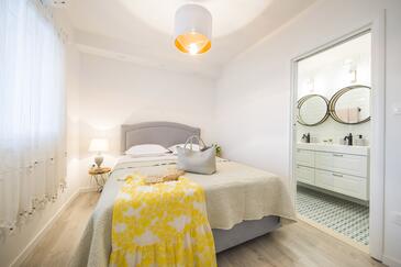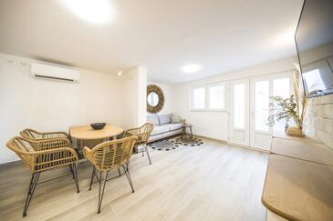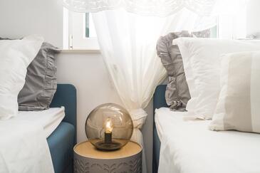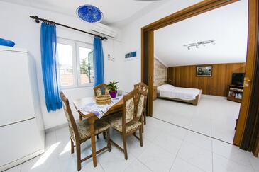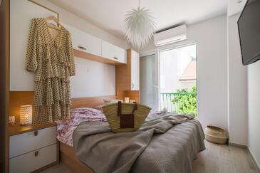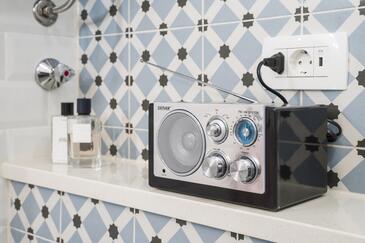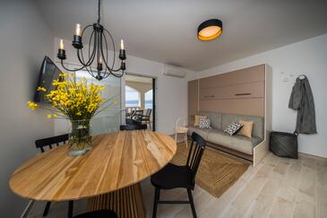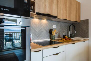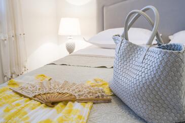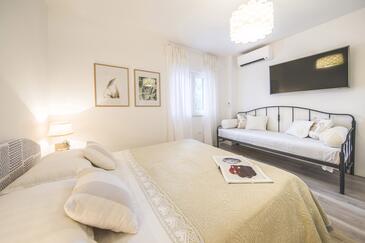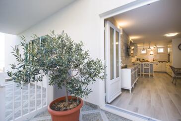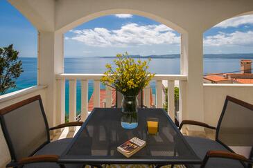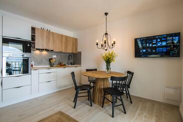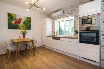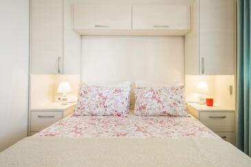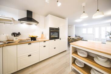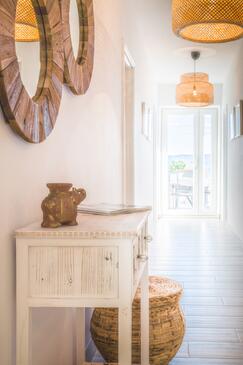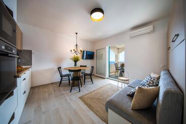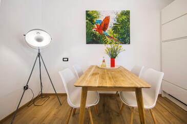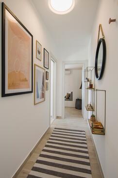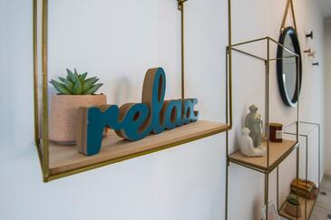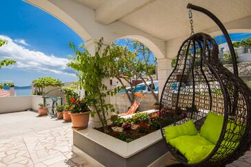 Appartamento può accogliere 9 ospiti. I letti sono disposti nelle camere da letto che sono 4, su 93m2. Gli ospiti hanno a disposizione il proprio terrazzo per godere nelle calde serate estive. Dall'appartamento si gode di una vista sul mare. Si può preparare il cibo utilizzando il barbecue comune.