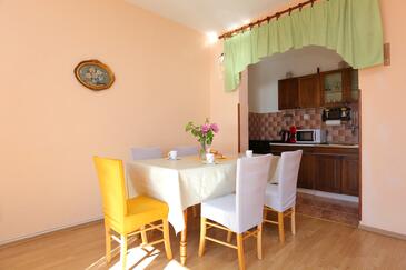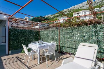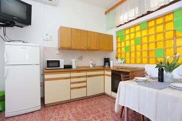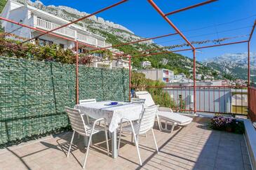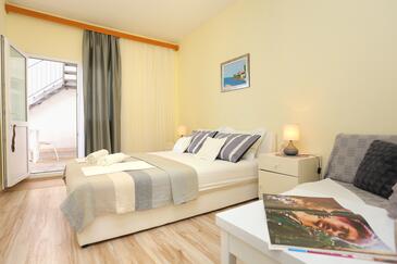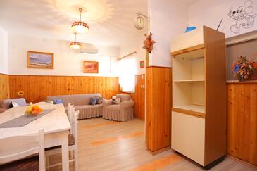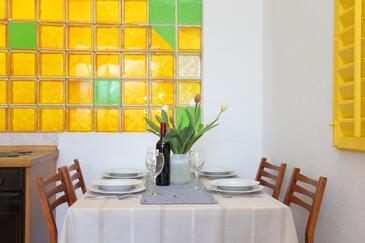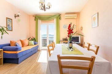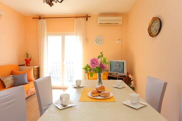 Appartamento può accogliere 6 ospiti. I letti sono disposti nelle camere da letto che sono 2, e nella camera di soggiorno, su 59m2. Gli ospiti hanno a disposizione il proprio terrazzo per godere nelle calde serate estive. Dall'appartamento si gode di una vista sul mare. Si può preparare il cibo utilizzando il barbecue comune.