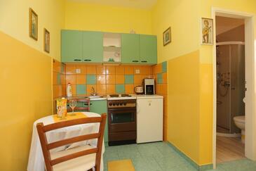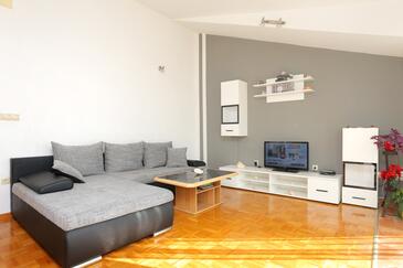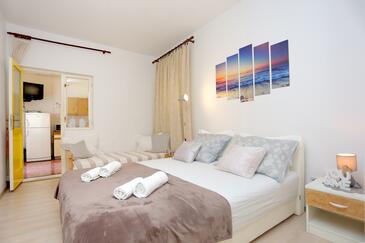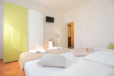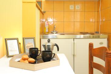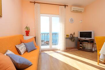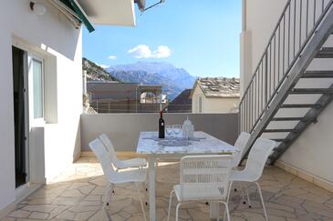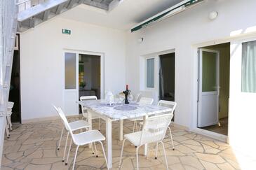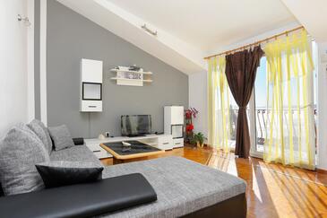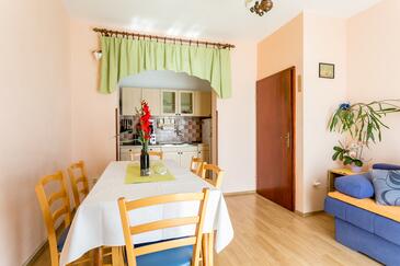 Appartamento può accogliere 6 ospiti. I letti sono disposti nelle camere da letto che sono 2, e nella camera di soggiorno, su 59m2. Gli ospiti hanno a disposizione il proprio terrazzo per godere nelle calde serate estive. Dall'appartamento si gode di una vista sul mare. Si può preparare il cibo utilizzando il barbecue comune.