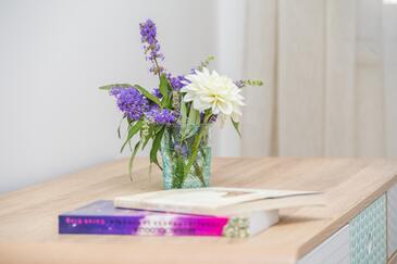 Appartamento può accogliere 4 ospiti. I letti sono disposti nelle camere da letto che sono 1, e nella camera di soggiorno, su 43m2. Gli ospiti hanno a disposizione il proprio terrazzo per godere nelle calde serate estive. Dall'appartamento si gode di una vista sul mare.