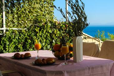 Appartamento può accogliere 4 ospiti. I letti sono disposti nelle camere da letto che sono 2, su 51m2. Gli ospiti hanno a disposizione il proprio terrazzo per godere nelle calde serate estive. Dall'appartamento si gode di una vista sul mare. Si può preparare il cibo utilizzando il barbecue comune. Durante il soggiorno gli ospiti si possono rilassare nella piscina privata.