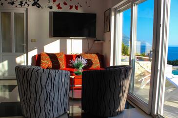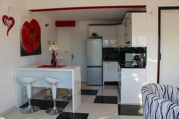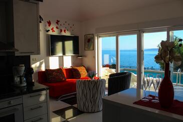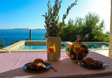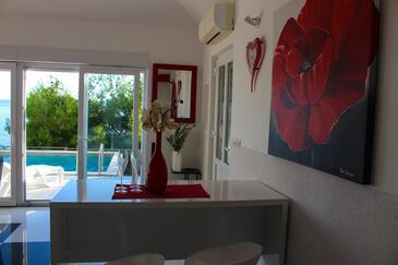 Appartamento può accogliere 4 ospiti. I letti sono disposti nelle camere da letto che sono 2, su 51m2. Gli ospiti hanno a disposizione il proprio terrazzo per godere nelle calde serate estive. Dall'appartamento si gode di una vista sul mare. Si può preparare il cibo utilizzando il barbecue comune. Durante il soggiorno gli ospiti si possono rilassare nella piscina privata.