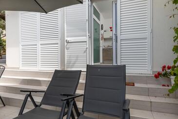 Appartamento può accogliere 5 ospiti. I letti sono disposti nelle camere da letto che sono 2, e nella camera di soggiorno, su 53m2. Gli ospiti hanno a disposizione il proprio terrazzo per godere nelle calde serate estive. Dall'appartamento si gode di una vista sul mare. Si può preparare il cibo utilizzando il barbecue comune.