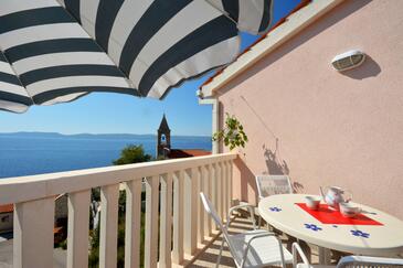 Appartamento può accogliere 5 ospiti. I letti sono disposti nelle camere da letto che sono 2, su 54m2. Gli ospiti hanno a disposizione il proprio terrazzo per godere nelle calde serate estive. Dall'appartamento si gode di una vista sul mare. Si può preparare il cibo utilizzando il barbecue comune.