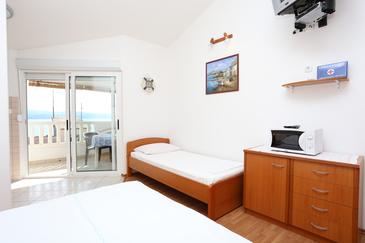 Monolocale può accogliere 3 ospiti. I letti sono disposti nelle camere da letto che sono 1, su 24m2. Gli ospiti hanno a disposizione il proprio terrazzo per godere nelle calde serate estive. Dal monolocale si gode di una vista sul mare. Si può preparare il cibo utilizzando il barbecue comune.