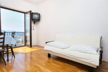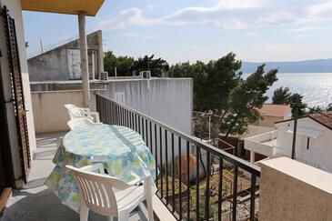 Appartamento può accogliere 7 ospiti. I letti sono disposti nelle camere da letto che sono 2, e nella camera di soggiorno, su 65m2. Gli ospiti hanno a disposizione il proprio balcone per godere delle calde serate estive. Dall'appartamento si gode di una vista sul mare.