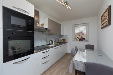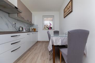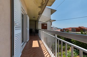 Appartamento può accogliere 6 ospiti. I letti sono disposti nelle camere da letto che sono 3, su 84m2. Gli ospiti hanno a disposizione il proprio balcone per godere delle calde serate estive. Dall'appartamento si gode di una vista sul mare. Si può preparare il cibo utilizzando il barbecue comune.