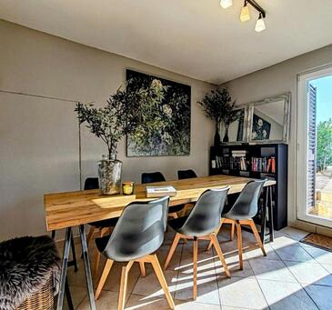 Casa può accogliere 9 ospiti. I letti sono disposti nelle camere da letto che sono 4, e nella camera di soggiorno, su 146m2. Gli ospiti hanno a disposizione il proprio terrazzo per godere nelle calde serate estive. Dalla casa si gode di una vista sul mare. Per il piacere totale e il relax c'è il barbecue privato solo per gli ospiti di quest'alloggio. Durante il soggiorno gli ospiti possono utilizzare la piscina comune. Nell'unità di alloggio si possono portare gli animali domestici con un pagamento supplementare.
