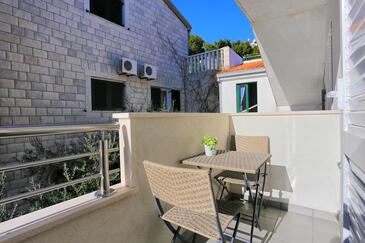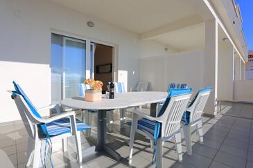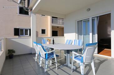 Appartamento può accogliere 4 ospiti. I letti sono disposti nelle camere da letto che sono 2, su 54m2. Gli ospiti hanno a disposizione il proprio terrazzo per godere nelle calde serate estive. Dall'appartamento si gode di una vista sul mare. Si può preparare il cibo utilizzando il barbecue comune.