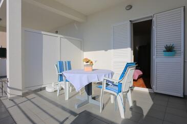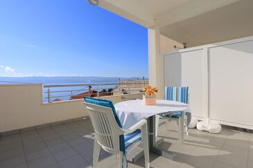 Appartamento può accogliere 4 ospiti. I letti sono disposti nelle camere da letto che sono 2, su 54m2. Gli ospiti hanno a disposizione il proprio terrazzo per godere nelle calde serate estive. Dall'appartamento si gode di una vista sul mare. Si può preparare il cibo utilizzando il barbecue comune.