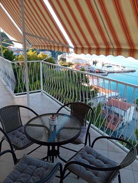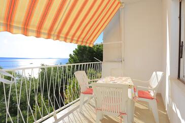 Appartamento può accogliere 4 ospiti. I letti sono disposti nelle camere da letto che sono 2, su 64m2. Gli ospiti hanno a disposizione il proprio terrazzo per godere nelle calde serate estive. Dall'appartamento si gode di una vista sul mare. Si può preparare il cibo utilizzando il barbecue comune.