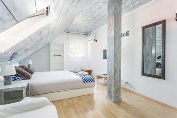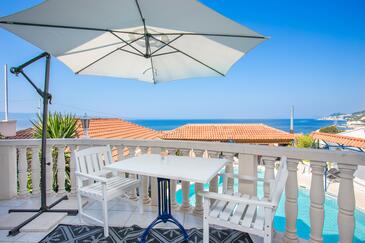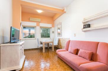 Appartamento può accogliere 4 ospiti. I letti sono disposti nelle camere da letto che sono 2, su 55m2. Gli ospiti hanno a disposizione il proprio terrazzo per godere nelle calde serate estive. Dall'appartamento si gode di una vista sul mare. Per il piacere totale e il relax c'è il barbecue privato solo per gli ospiti di quest'alloggio. Durante il soggiorno gli ospiti possono utilizzare la piscina comune. Nell'unità di alloggio si possono portare gli animali domestici con un pagamento supplementare.