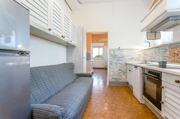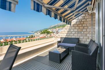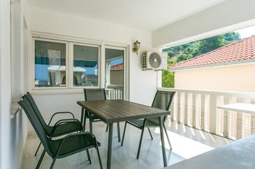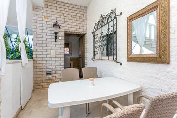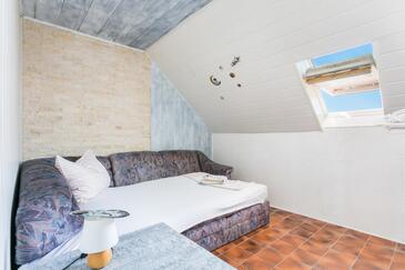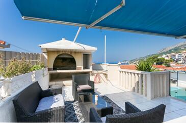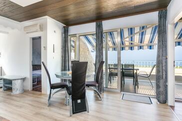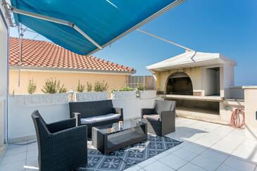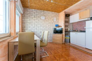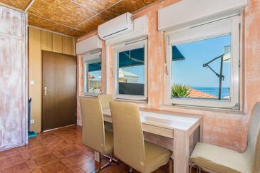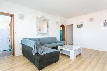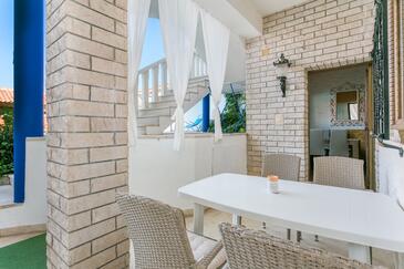 Appartamento può accogliere 4 ospiti. I letti sono disposti nelle camere da letto che sono 2, su 55m2. Gli ospiti hanno a disposizione il proprio terrazzo per godere nelle calde serate estive. Dall'appartamento si gode di una vista sul mare. Per il piacere totale e il relax c'è il barbecue privato solo per gli ospiti di quest'alloggio. Durante il soggiorno gli ospiti possono utilizzare la piscina comune. Nell'unità di alloggio si possono portare gli animali domestici con un pagamento supplementare.