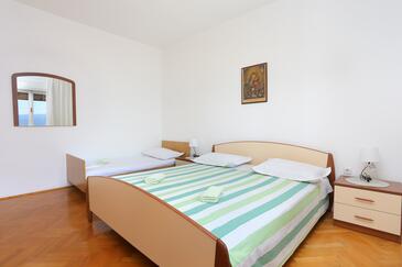 Appartamento può accogliere 8 ospiti. I letti sono disposti nelle camere da letto che sono 3, su 86m2. Gli ospiti hanno a disposizione il proprio balcone per godere delle calde serate estive. Dall'appartamento si gode di una vista sul mare. Si può preparare il cibo utilizzando il barbecue comune.