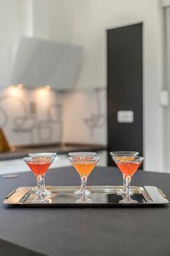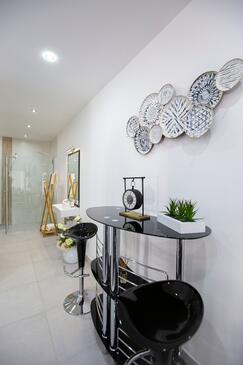 Casa può accogliere 8 ospiti. I letti sono disposti nelle camere da letto che sono 4, su 288m2. Gli ospiti hanno a disposizione il proprio terrazzo per godere nelle calde serate estive. Per il piacere totale e il relax c'è il barbecue privato solo per gli ospiti di quest'alloggio. Durante il soggiorno gli ospiti si possono rilassare nella piscina privata.