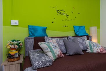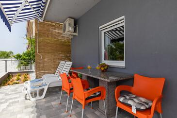 Appartamento può accogliere 4 ospiti. I letti sono disposti nelle camere da letto che sono 2, su 35m2. Gli ospiti hanno a disposizione il proprio terrazzo per godere nelle calde serate estive. Dall'appartamento si gode di una vista sul mare. Si può preparare il cibo utilizzando il barbecue comune. Durante il soggiorno gli ospiti possono utilizzare la piscina comune.