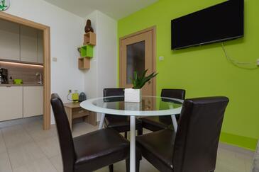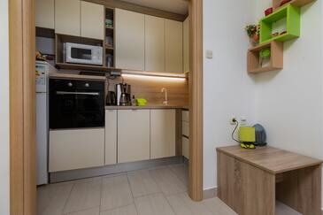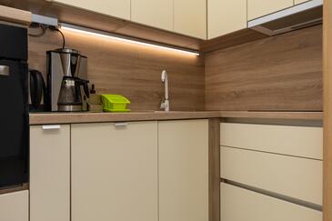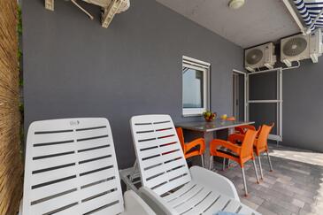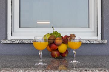 Appartamento può accogliere 4 ospiti. I letti sono disposti nelle camere da letto che sono 2, su 35m2. Gli ospiti hanno a disposizione il proprio terrazzo per godere nelle calde serate estive. Dall'appartamento si gode di una vista sul mare. Si può preparare il cibo utilizzando il barbecue comune. Durante il soggiorno gli ospiti possono utilizzare la piscina comune.
