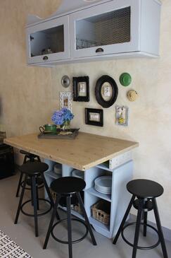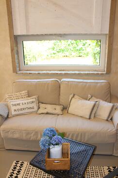 Appartamento può accogliere 3 ospiti. I letti sono disposti nelle camere da letto che sono 1, e nella camera di soggiorno, su 38m2. Gli ospiti hanno a disposizione il proprio terrazzo per godere nelle calde serate estive. Dall'appartamento si gode di una vista sul mare. Si può preparare il cibo utilizzando il barbecue comune. Arrivati nell'unità d'alloggio i clienti devono pagare un deposito (il prezzo è indicato sul sito).