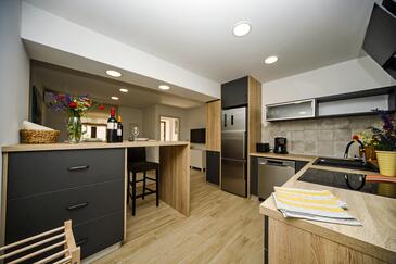Casa può accogliere 6 ospiti. I letti sono disposti nelle camere da letto che sono 3, su 89m2. Gli ospiti hanno a disposizione il proprio terrazzo per godere nelle calde serate estive. Per il piacere totale e il relax c'è il barbecue privato solo per gli ospiti di quest'alloggio. Durante il soggiorno gli ospiti si possono rilassare nella piscina privata. Nell'unità di alloggio si possono portare gli animali domestici con un pagamento supplementare.