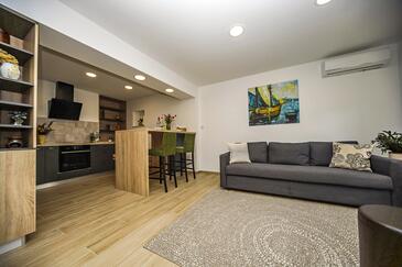 Casa può accogliere 6 ospiti. I letti sono disposti nelle camere da letto che sono 3, su 89m2. Gli ospiti hanno a disposizione il proprio terrazzo per godere nelle calde serate estive. Per il piacere totale e il relax c'è il barbecue privato solo per gli ospiti di quest'alloggio. Durante il soggiorno gli ospiti si possono rilassare nella piscina privata. Nell'unità di alloggio si possono portare gli animali domestici con un pagamento supplementare.